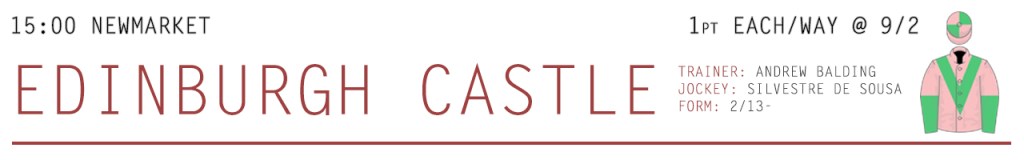 Since last seen on the track, Edinburgh Castle has been Gelded, and I’m hoping that the winter break will have done him the world of good both physically and mentally. Assuming he’s learnt to be quicker out of the stalls, then a mark of 82 looks to be very kind considering his potential ability – and stepping up to 1m4f for the first time on Handicap debut should help. Trainer Andrew Balding has been in great form since the resumption of racing at Newcastle on Monday, so Edinburgh Castle looks to have a great chance. The four places on offer look worthwhile taking advantage of.