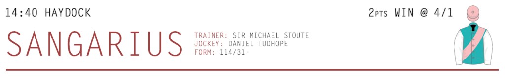 Sangarius was originally engaged over 1m at Newmarket on Friday, and whilst that wouldn’t necessarily have been a negative, swerving that in order to come to Haydock for the Brigadier Gerard Stakes over 1m2f should mean he is running under optimum conditions. Already rated 113 for his efforts to date, this Khalid Abdullah four-year-old doesn’t have much to find with the likes of Elarqam, and I really do think he will end up being a Group 1 Horse this season. Sir Michael Stoute has had his string in fantastic form during the week, with the likes of Alignak, Mubakker, First Receiver and Jovial all recording impressive victories, and I’m expecting more of the same with one of his first ‘big guns’ to hit the track this season.